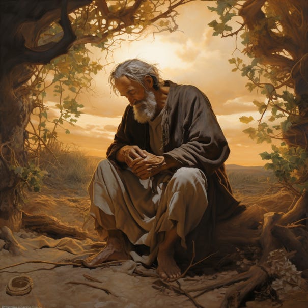 Desesperado, Job se sentó en cenizas, lamentándose y preguntándose "¿Por qué a mí, Dios?" Pasó días y noches hundi…