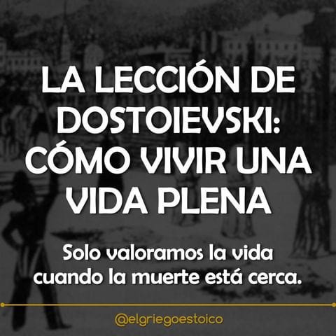 En la fría mañana en la plaza, Dostoievski puede ver ataúdes vacíos y soldados cargando sus rifles. Al levantar la vista, se le pasa una idea por la cabeza. Si de algún modo escapa a la muerte, piensa, su vida parecerá interminable. Será como si tuviera una eternidad por delante. Cada minuto le parecerá un siglo.