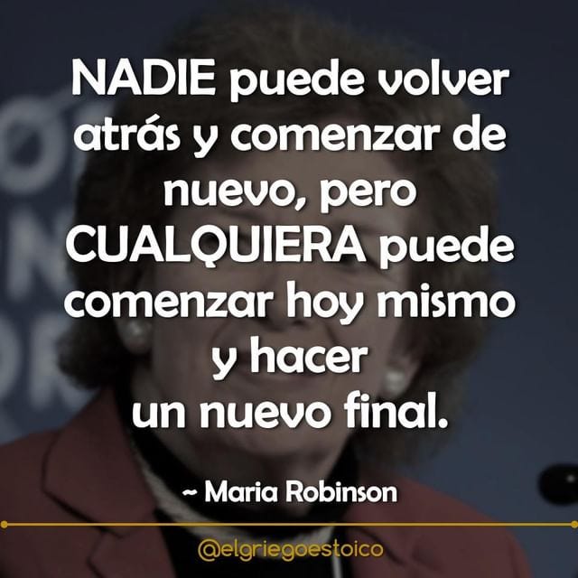 NADIE puede volver atrás y comenzar de nuevo, pero CUALQUIERA puede comenzar hoy mismo y hacer un nuevo final.