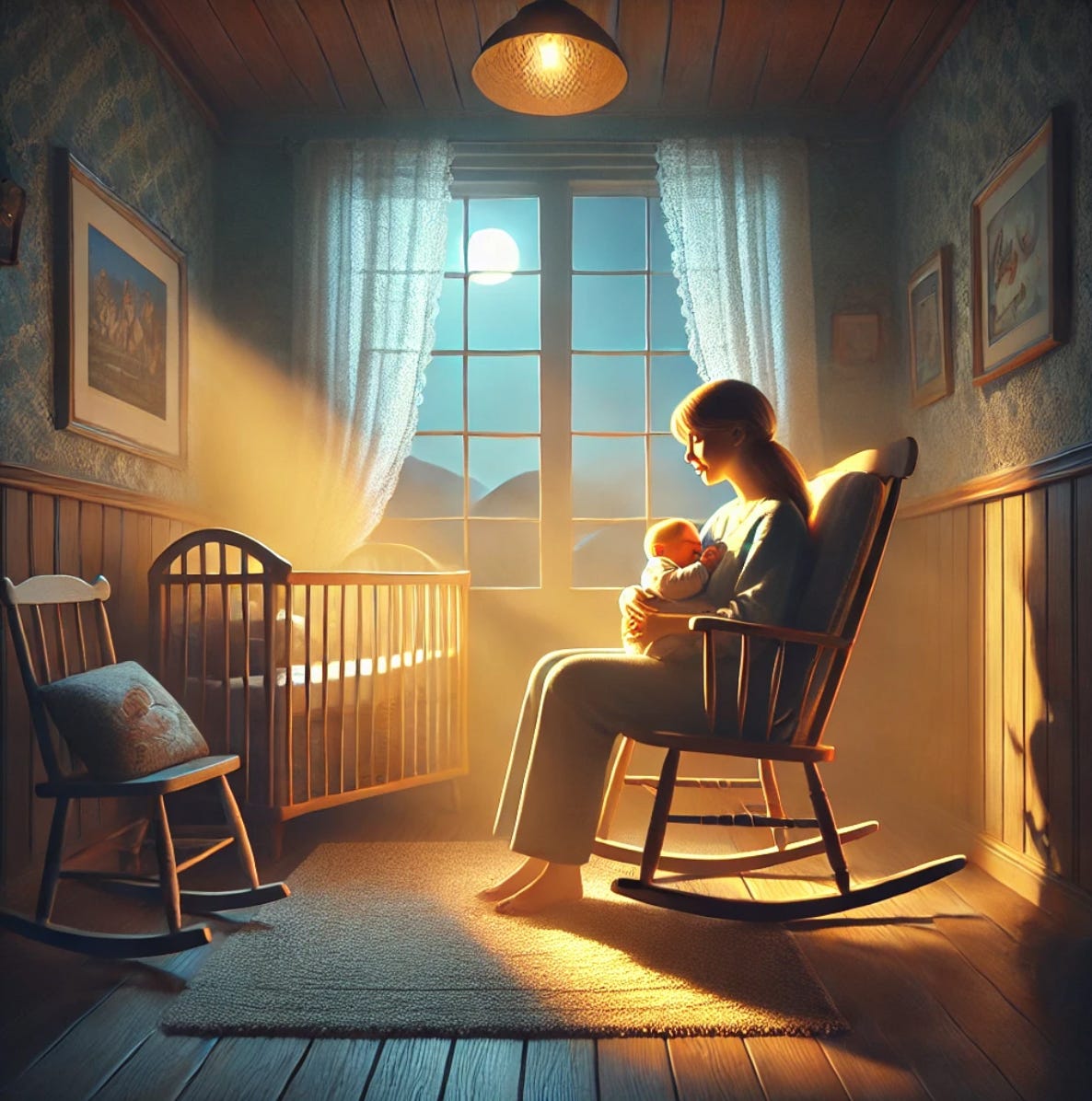 En una pequeña habitación, iluminada por la luz de la luna, una madre se mece con su bebé en brazos. Su voz canta una melodía que resonará a través de los años: