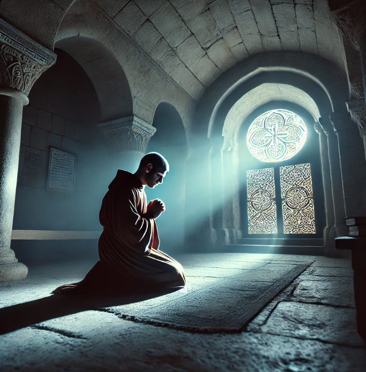 Era medianoche. El monje se arrodilló en su celda y susurró: