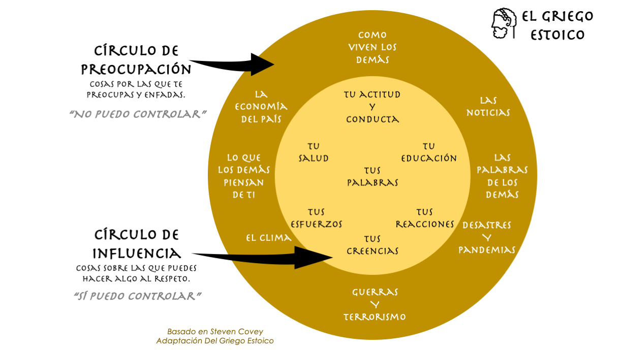 En el libro de Steven Covey, Los 7 Hábitos De Las Personas Altamente Efectivas, el autor introduce el concepto del Círculo de Preocupación y el Círculo de Influencia.